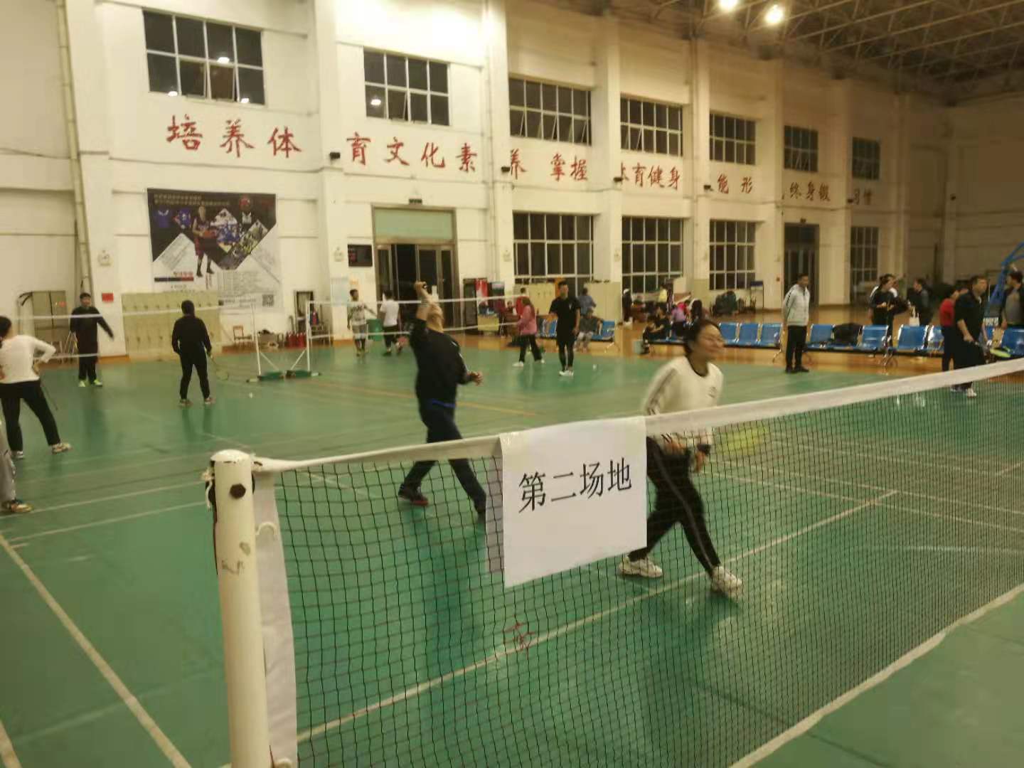 此次比赛,各院部高度重视,组织得力,比赛进程井然有序。比赛分团体赛和个人赛两大项,团体赛由男双、女双、混双三个单项,单项比赛均采用30分制,15分交换场地,每场比赛结束后合计单项比分,总分高者获胜;个人赛分男子单打和女子单打两项。赛场上,教职工们尽显风采,将高远球、扣杀、吊球等各种球技展现的淋漓尽致;赛场下,拉拉队的喝彩声、加油声、欢呼声此起彼伏。比赛中,每位参赛选手充分发挥顽强拼搏的体育精神,即使落后,仍每球必争,决不轻易放弃,奋力拼搏的精神充溢了整个赛场。