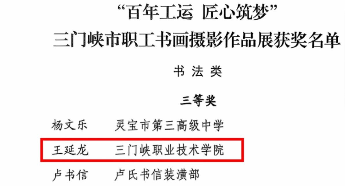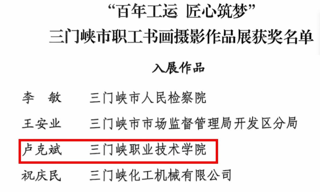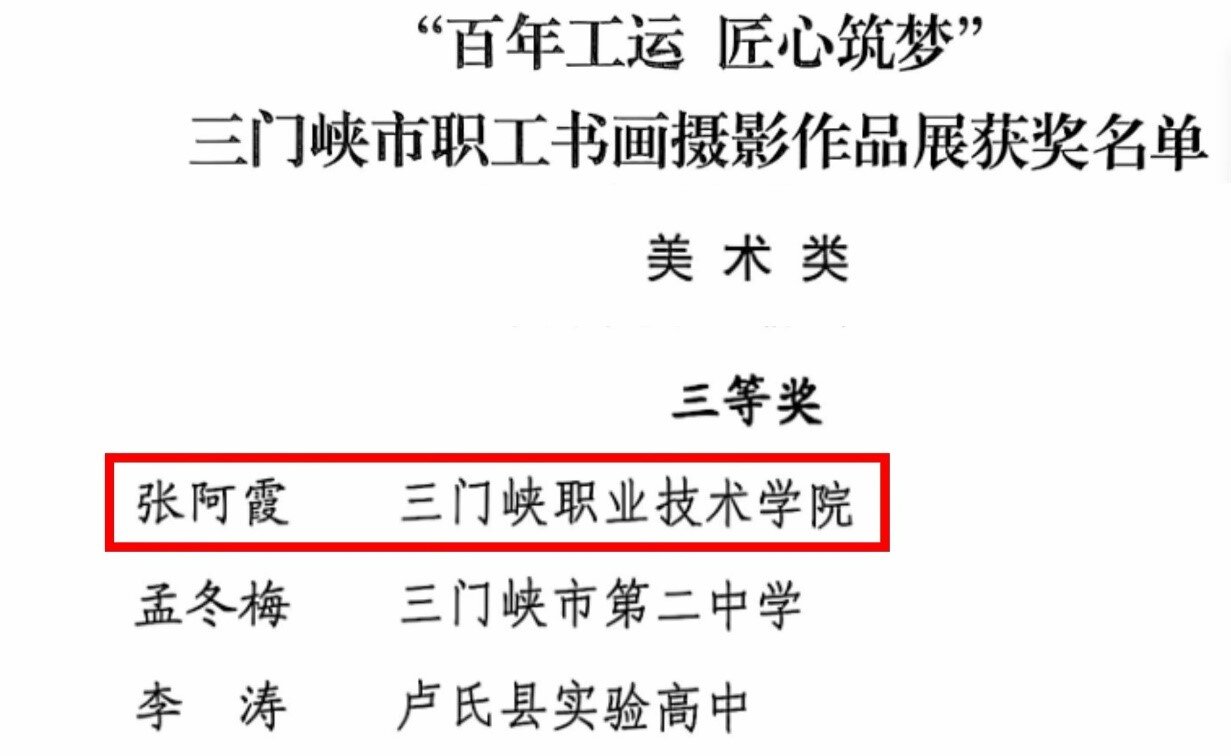 近日,在三门峡市总工会举办的“百年工运 匠心筑梦”全市职工书画摄影作品展活动中,我院教职工在学院工会的精心组织下踊跃参与,凭借出色作品脱颖而出、再创佳绩。