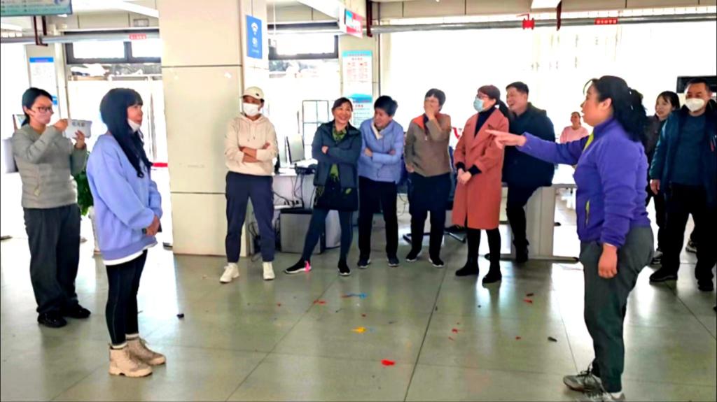 2日下午,图书馆女职工在一楼大厅举办了跳绳、两人三足、你来比划我来猜等多个项目的趣味活动。